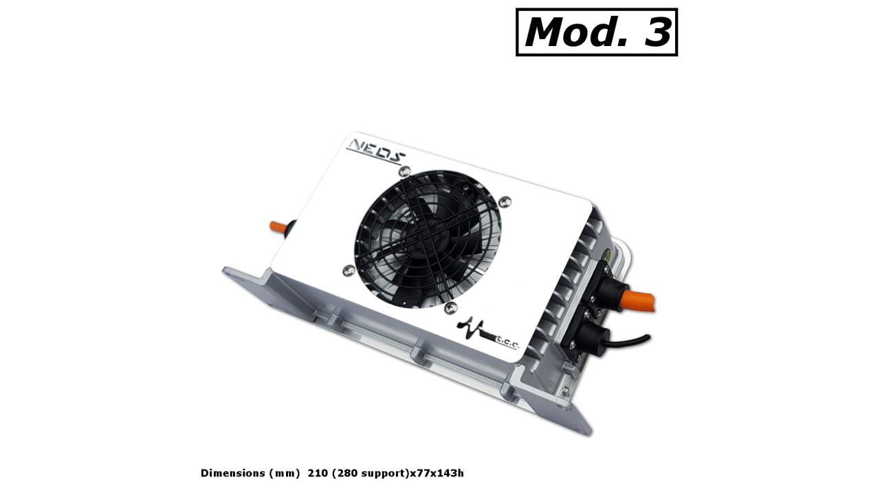 Η σειρά NEOS είναι ιδανική για να εγκατασταθεί ενσωματωμένα σε ηλεκτρικά οχήματα χάρη στις μειωμένες διαστάσεις των φορτιστών. Μέσω των ειδικών στηριγμάτων, η εγκατάσταση είναι γρήγορη και απλή.
